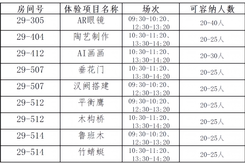 科学实验、航模展示、科创作品展示、光电模块展示体验、电子科技体验、图形化编程体验等。
