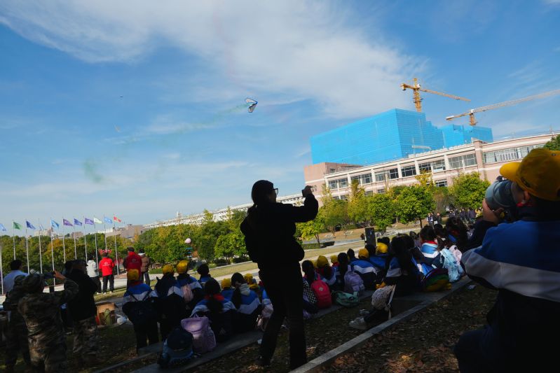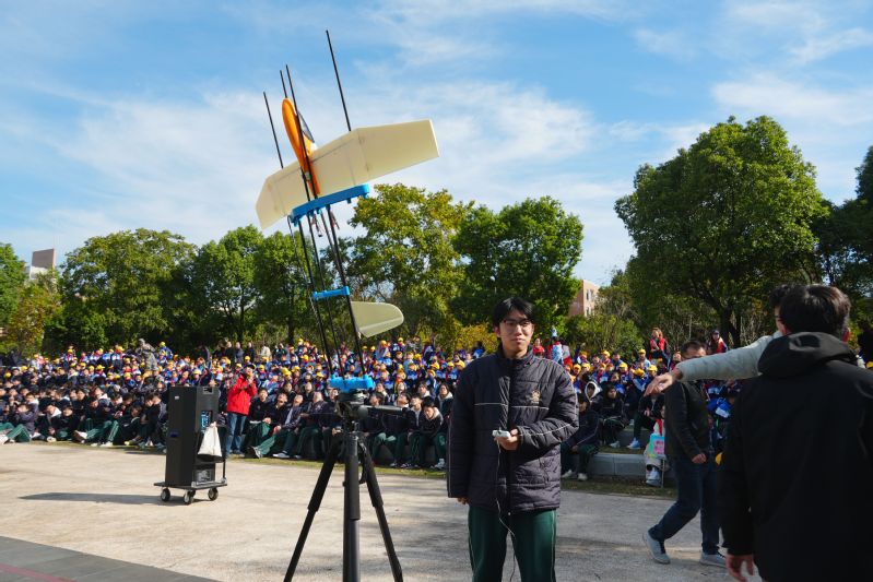 “空战对决”引爆全场——数架航模呼啸着冲上蓝天,或俯冲、或翻滚,尾烟画出银白弧线。同学们翘首仰望,欢呼声随引擎轰鸣此起彼伏,仿佛置身真正的空战现场。
