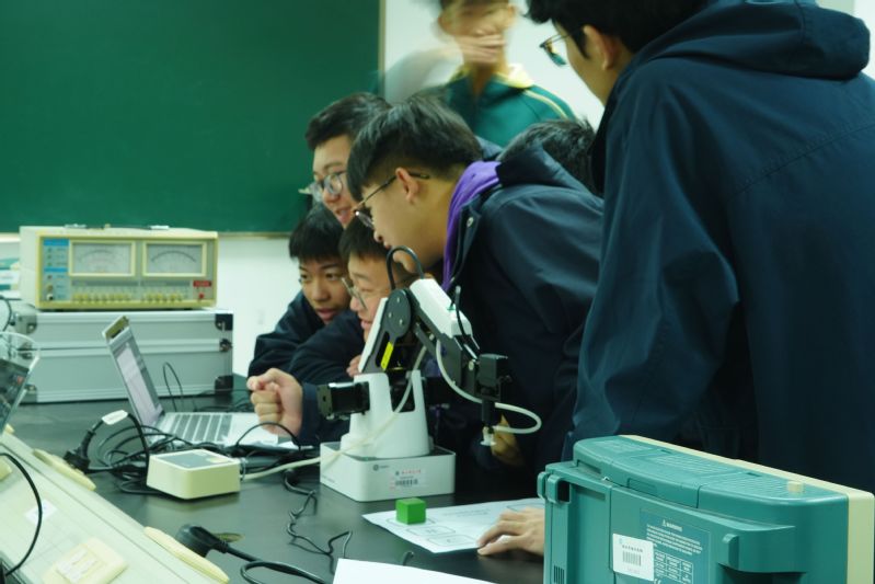 “机械手臂”化繁为简——只需几行指令,铁臂便灵活地夹积木、码货物,把原本费时费力的重复劳动变成精准高效的“指尖舞蹈”。同学们亲手编程,第一次体会到“自动化”的魔力。