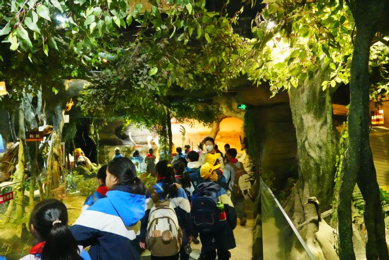 “科技寻奇”科学探秘——在科技馆中,同学们或深入幽深丛林,探秘奇珍异兽;或潜入蔚蓝深海,解锁蔚蓝深处的生命密码。