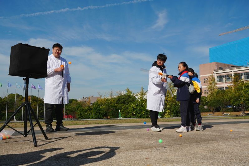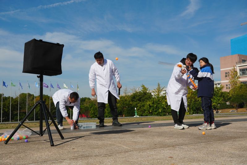 “空气机枪”率先登场——伯努利“无形的大手”把乒乓球一颗颗压进“枪膛”,嗖地射向靶心。同学们屏住呼吸、瞄准、击发,赛场秒变“神枪手”对决!