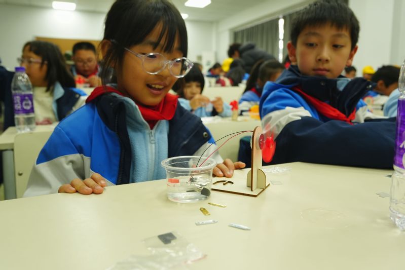 “盐水电池”点燃好奇——两片金属、一杯盐水,竟让小风扇欢快地转起来!电流诞生的瞬间,“为什么”此起彼伏:海水也能发电?多大电量能驱动手机?科学的种子,就这样悄悄发芽。